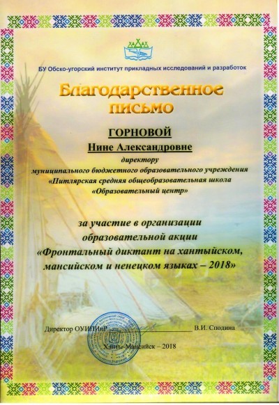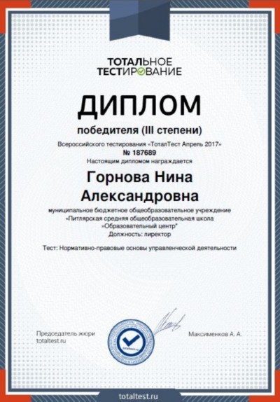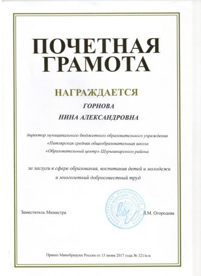 директор МБОУ - Питлярская СОШ "Образовательный центр" преподаватель иностранного языка Отличник народного просвещения Почетная грамота Миистерства образования и науки РФ